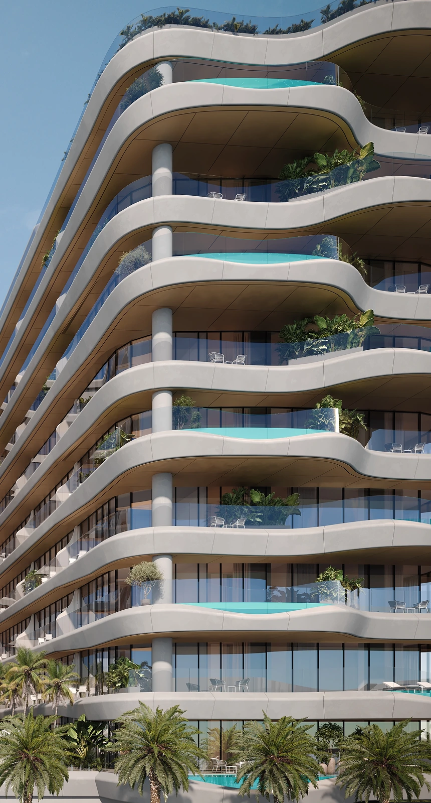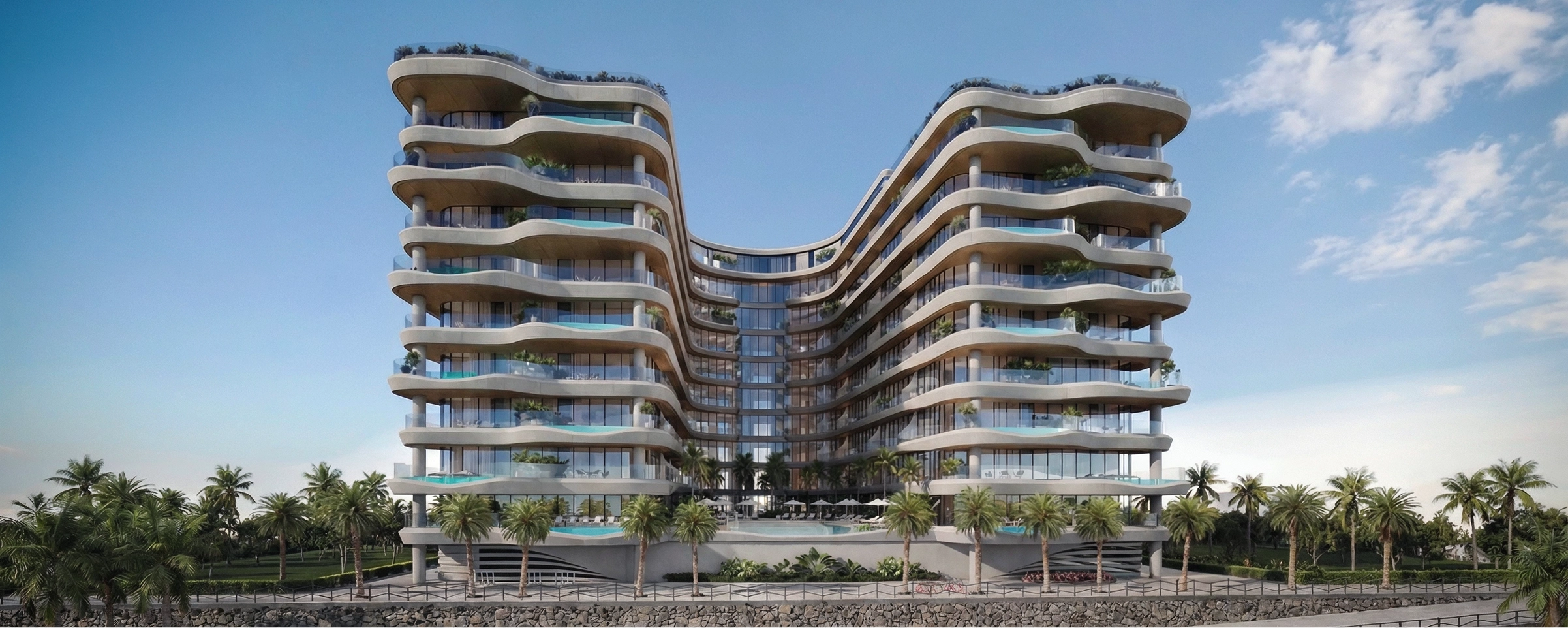 Gianfranco Ferré Residences is a nine-storey branded residential development positioned at the very tip of Al Marjan Island in Ras Al Khaimah. Surrounded by the Arabian Gulf on three sides, the project offers fully furnished studios, 1- and 2-bedroom apartments, and 2- to 4-bedroom duplex residences with 5-star hotel-style services and uninterrupted sea views.